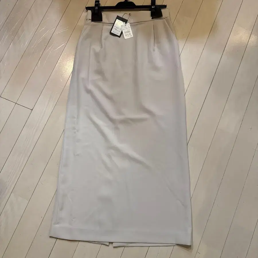 가벼운 베이지 색상의 롱 스커트, 폴리에스테르 소재로 쾌적한 착용감.