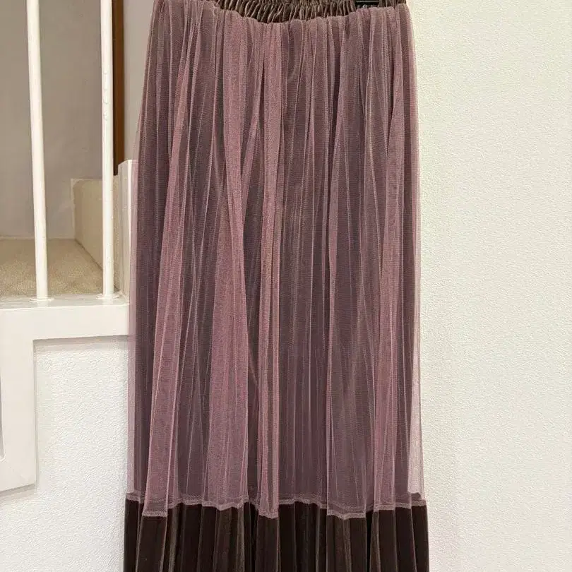 나노 유니버스 브라운 롱 스커트 전체 밴딩 나노 유니버스
