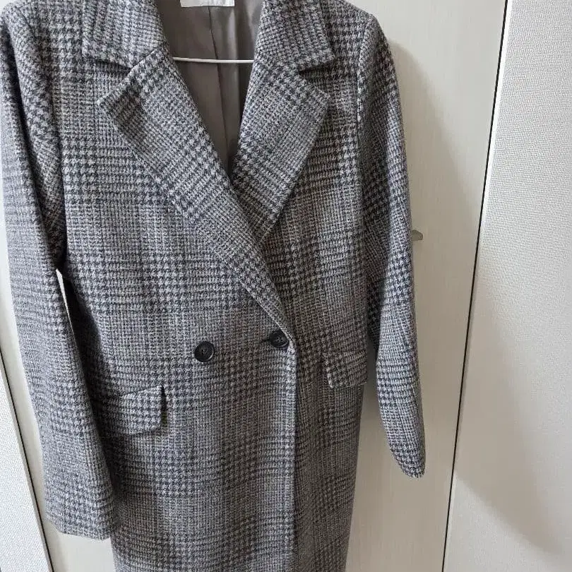 체크 무늬 더블 브레스트 코트, 실크 느낌의 안감 부착으로 쾌적한 착용감. 클리닝 완료되었습니다. - 브랜드: GLOBAL WORK - 디자인: 체크 무늬 - 스타일: 더블 브레스트 - 색상: 그레이 계열 - 안감: 실크 느낌의 소재 방문해 주셔서 감사합니다. 색상 - 그레이 계열