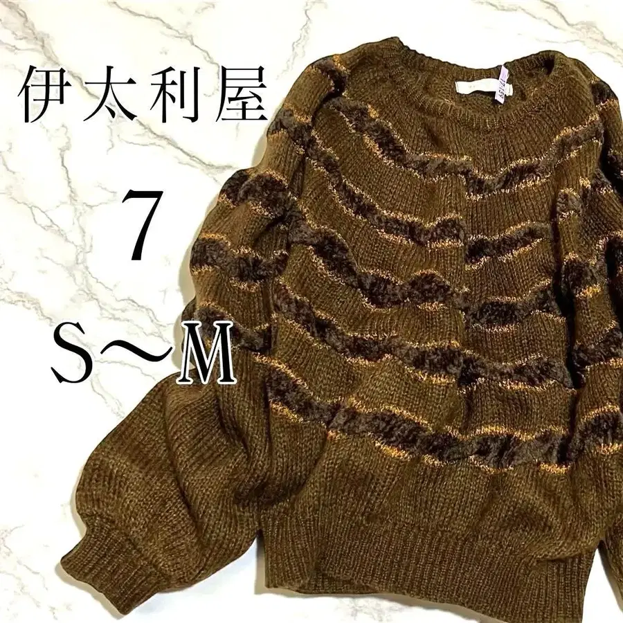 물결 무늬 브라운 니트 스웨터, S~M 사이즈.
