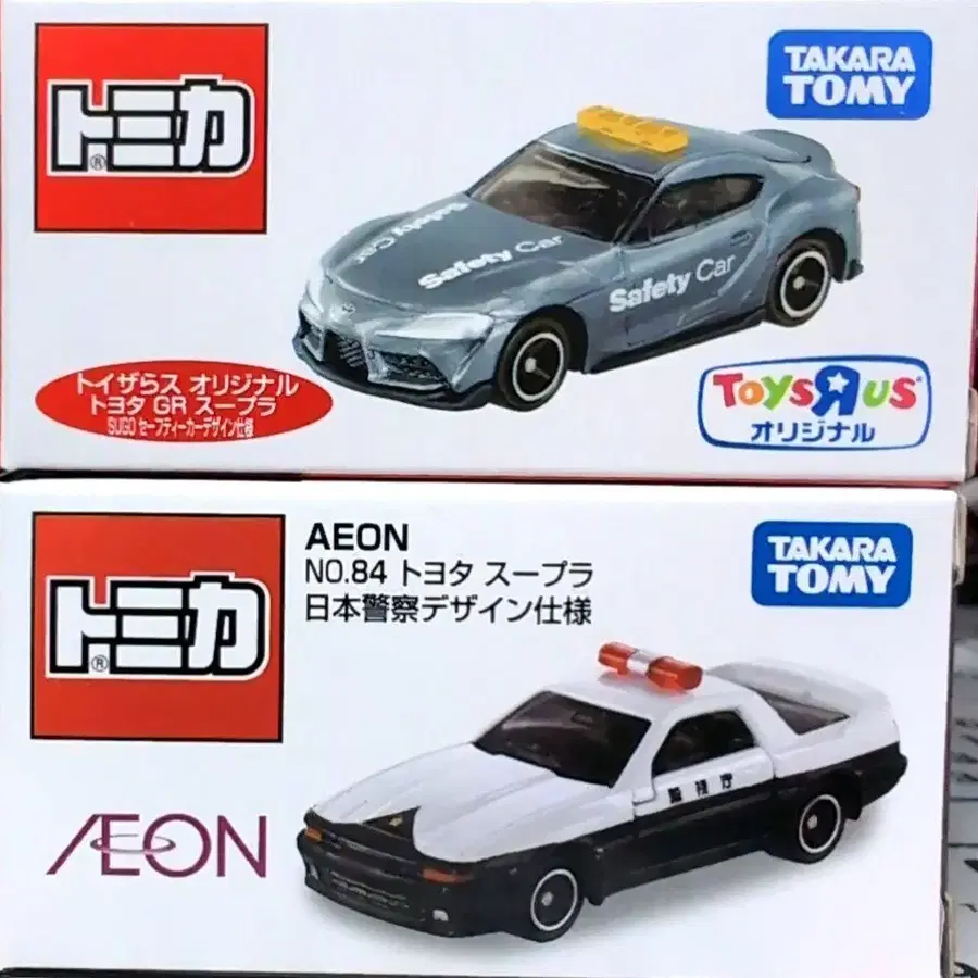 도요타 GR 수프라와 일본 경찰 디자인의 미니카 세트.