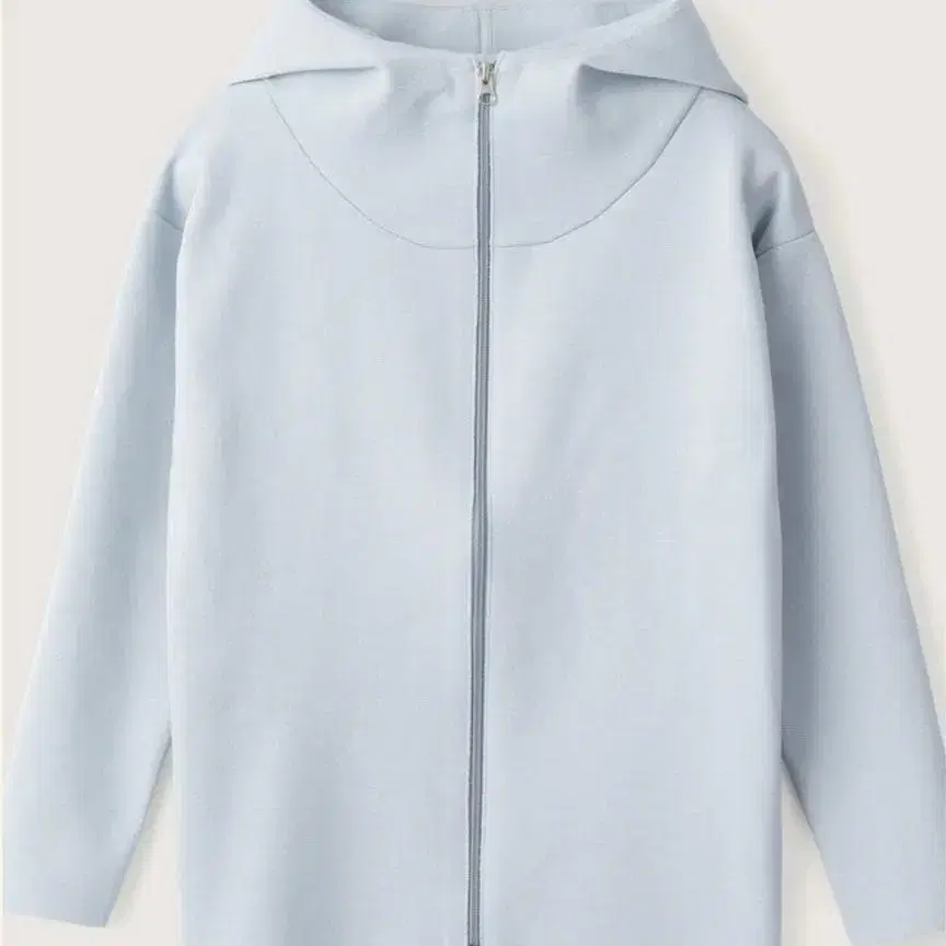 포인트는 몸의 라인을 드러내지 않는 소재와 사이즈감, 그리고 후드 디자인입니다. 넥 절개 위치를 낮추고 얼굴 주변에 적당히 감기는 듯한 입체감을 살린 후드 실루엣이 스포티하면서도 스타일리시한 인상을 줍니다.