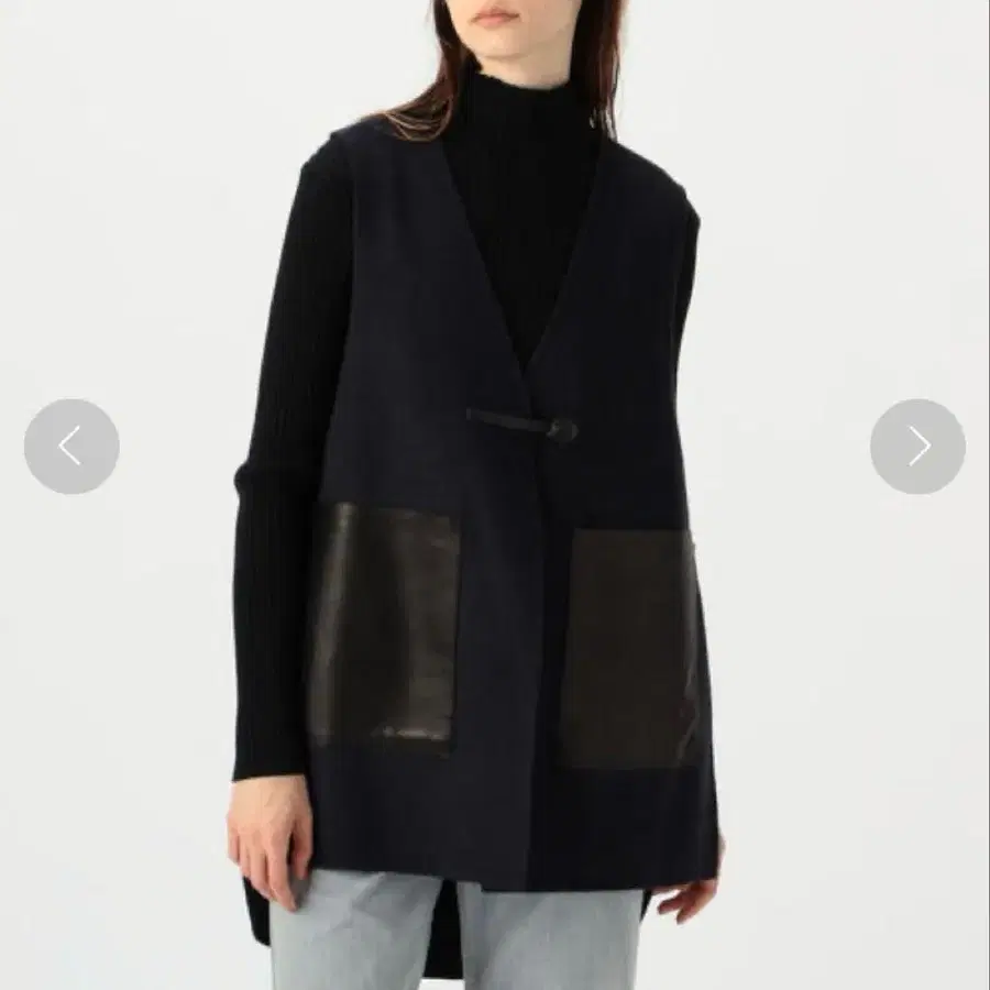 〈DES PRES〉 스테디셀러인 가볍고 따뜻한 착용감과 고급스러운 광택감이 매력인 더블 페이스 소재를 사용한 베스트. 볼륨감 있는 터치와 질감에 코다와리를 두어, 옛날 방식의 직기로 시간을 들여 정성껏 짜냈습니다. 깔끔한 실루엣에 노카라, 힙을 덮는 긴 기장으로 매니시한 인상을 주는 아이템. 빅 포켓과 버튼홀의 가죽 사용으로 샤프한 악센트를 더했습니다. 암홀을 넉넉하게 만들어 도톰한 니트나 오버사이즈 셔츠 등과도 궁합이 좋습니다. 옷장에 하나 있으면 다양한 레이어드 스타일을 즐기실 수 있는 아이템입니다.
