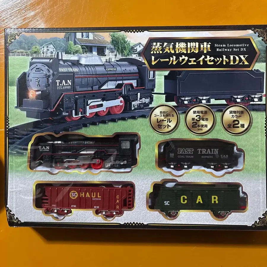 증기기관차와 화물차 2량, 260cm 레일 세트 포함. - 세트 내용: 증기기관차, 화물차 2량, 레일 세트 - 레일 길이: 260cm, 160cm, 130cm - 브랜드명: T.A.N 방문해 주셔서 감사합니다.