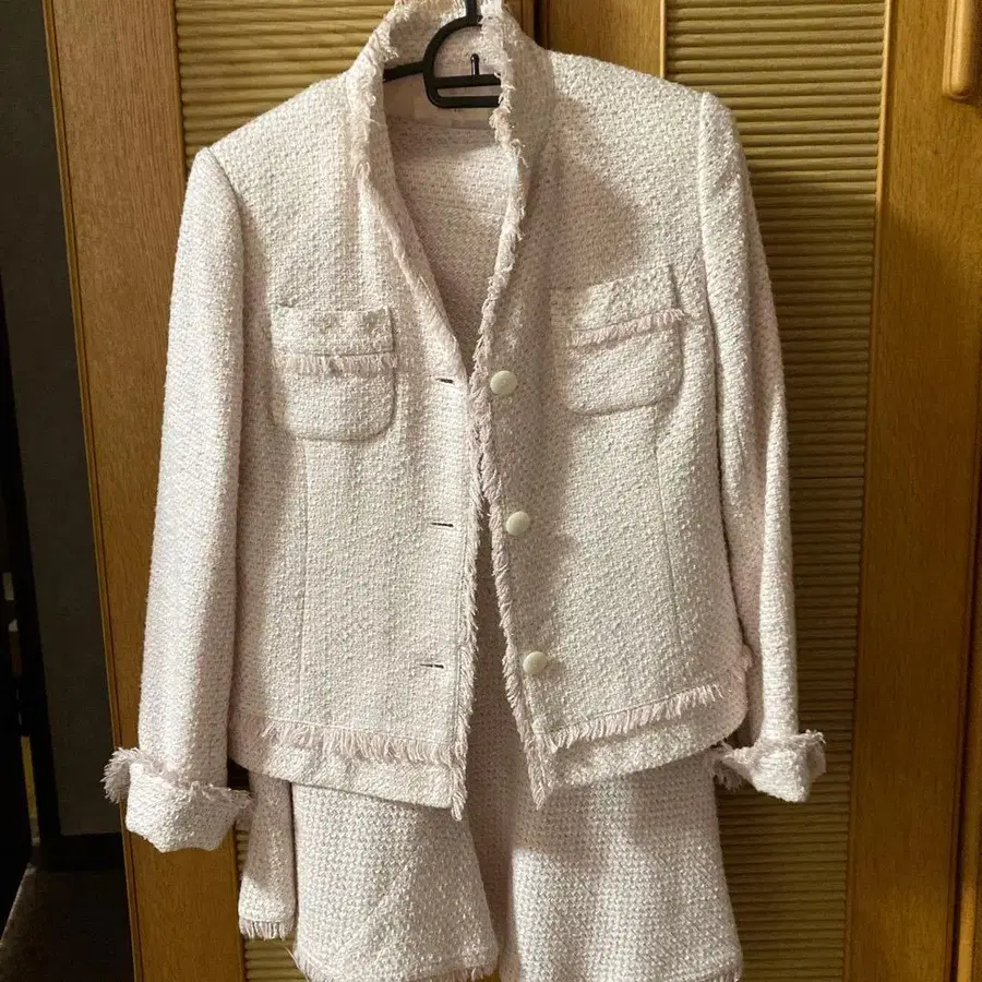 핑크 계열 트위드 자켓 & 숏팬츠 세트