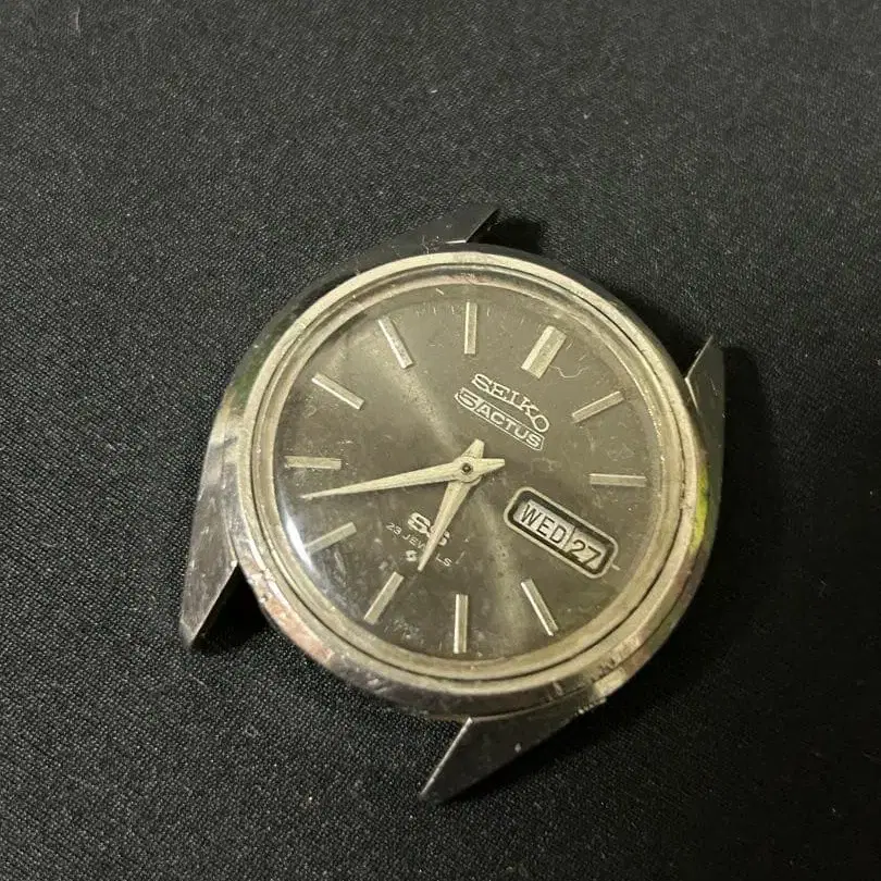세이코 70년대 자동 와인딩 시계, 날짜 표시 기능 포함.