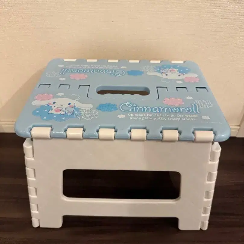 시나모롤 디자인의 접이식 스텝 스툴, 휴대하기 편리합니다. - 캐릭터명: 시나모롤 - 색상: 파랑 - 소재: 플라스틱 - 특징: 접이식, 손잡이 포함 - 내하중: 100kg 방문해 주셔서 감사합니다. 미사용 새상품이지만, 자택 보관이므로 예민하신 분의 구매는 삼가해 주시기 바랍니다. 타이틀 - 산리오 산리오/캐릭터명 - 시나모롤
