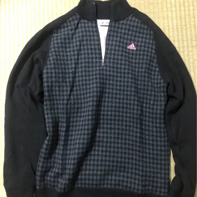 하운드 투스 패턴의 adidas 스웨터, 골프에 최적.