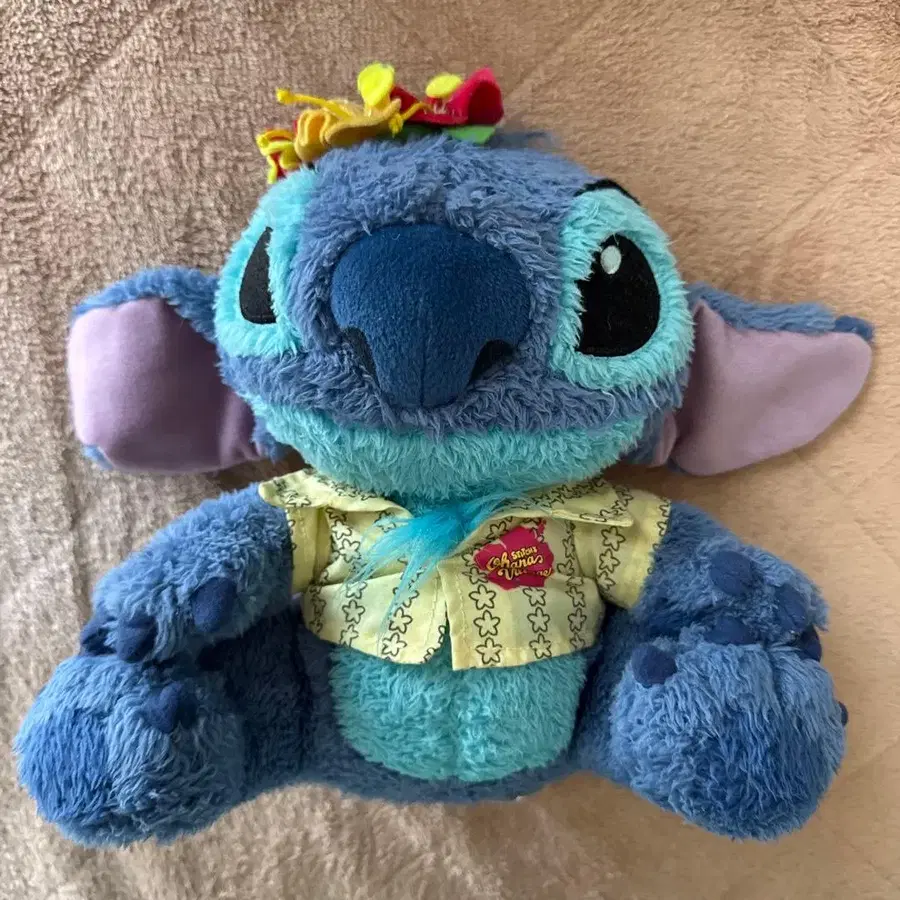알로하 셔츠를 입고 있는 봉제 인형입니다.