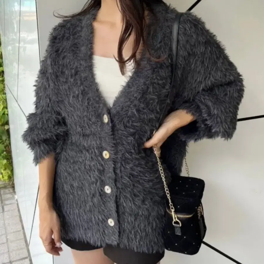 NICE CLAUP 퍼지 모테 아자토/페더 롱 가디건
