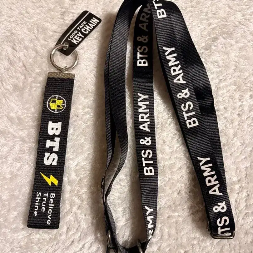 BTS & ARMY 로고가 새겨진 나일론 스트랩, 키링 포함. - 브랜드: BTS - 디자인: BTS & ARMY 로고 - 소재: 나일론 - 특징: 키링 포함 스트랩 - 색상: 블랙 방문해 주셔서 감사합니다. 그룹명 - BTS 아이템/종류 - 키링