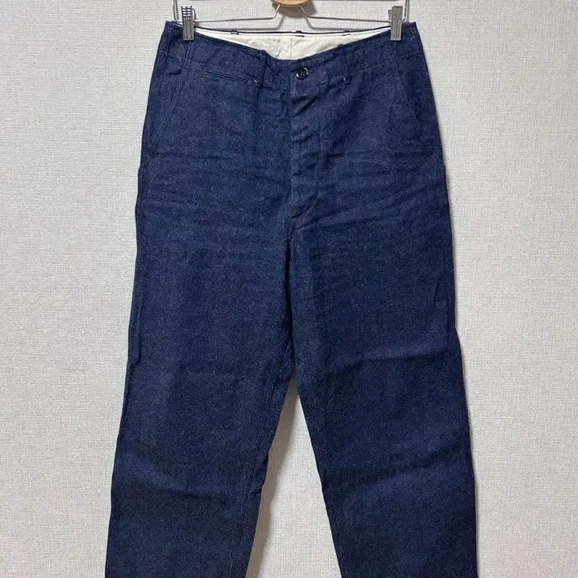 부처 프로덕트의 데님 치노입니다. 시부야 직영점에서 구매했습니다. 색상은 인디고입니다. 사이즈는 32인치 허리 83cm 힙 53cm 인심 72.5cm 허벅지 폭 35cm 밑단 폭 26cm 겨드랑이 부분의 봉제 사양은 접어박기입니다. 4-5회만 착용하여 새상품급입니다. 부처 프로덕트 데님 치노 32인치 새상품급