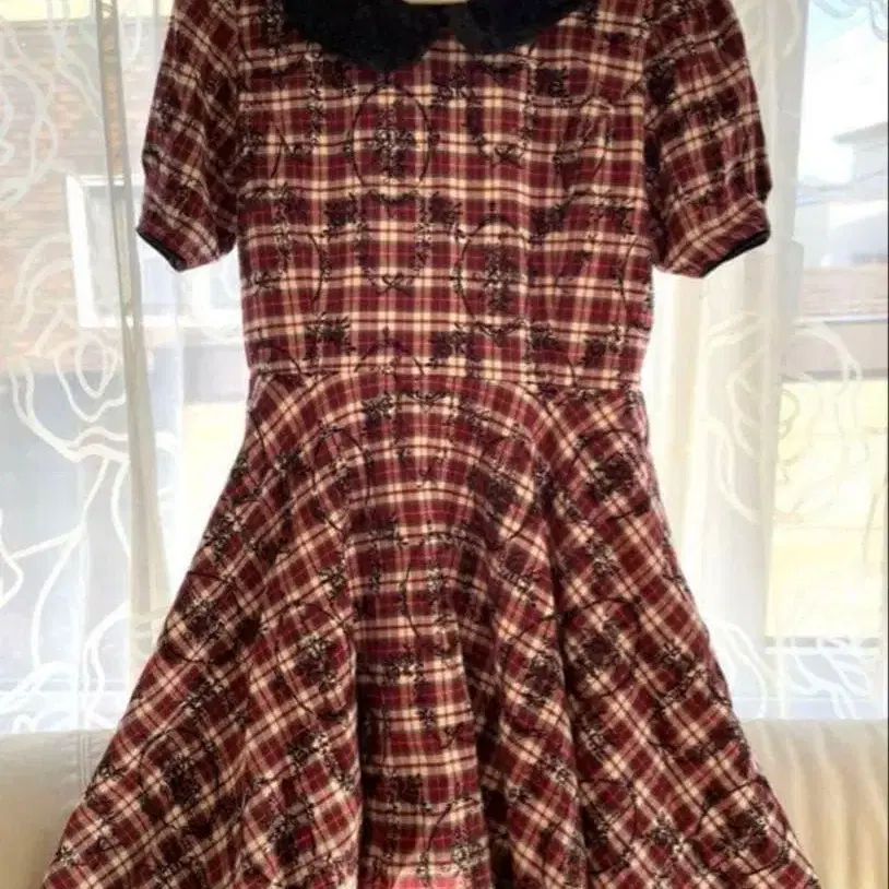 쇼와 레트로 체크 무늬 긴팔 원피스