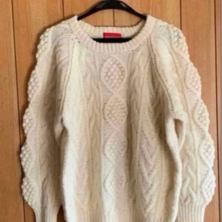 • 입체 케이블 짜임 니트 스웨터 화이트 M 넉넉한 캐주얼