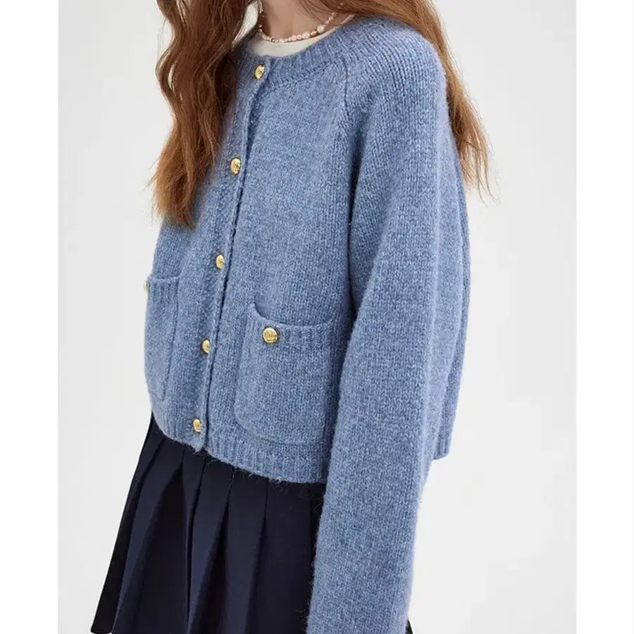 그린 라벨 울 혼방 니트 가디건 블루 겉옷 긴팔 무지