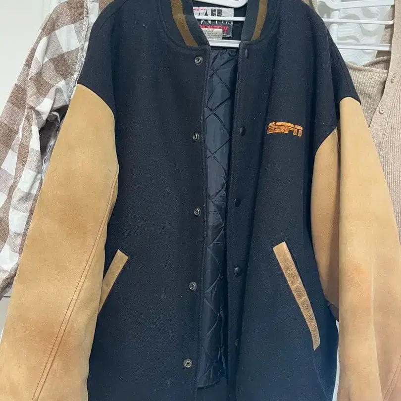구제 의류점에서 구매한 바시티 자켓입니다. 천연 가죽입니다. 사이즈 - L