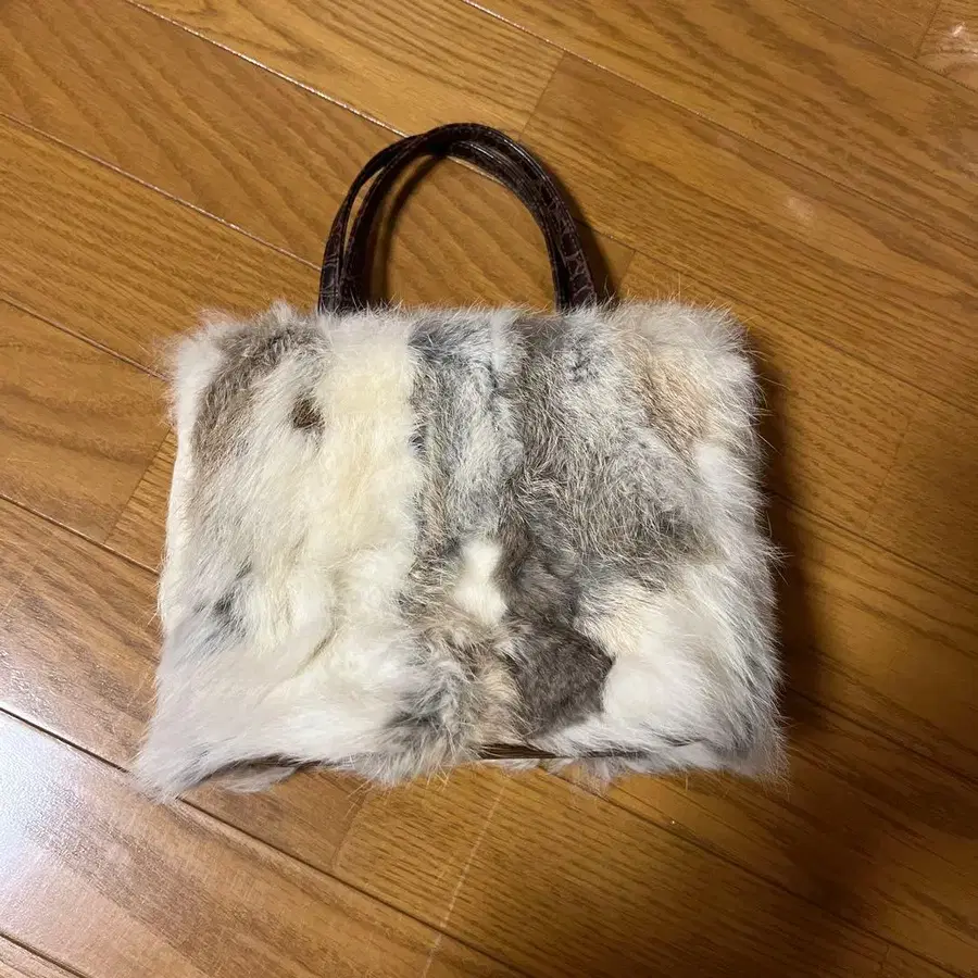 퍼 소재의 화이트와 브라운 핸드백, 2개의 손잡이가 있습니다(ᵔᴥᵔ) 안쪽은 복조리 형태로 되어 있습니다.
