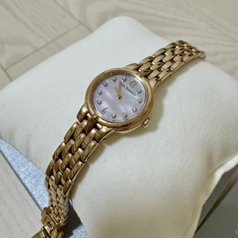 즉시 구매 ◎ 스타 주얼리 여성용 워치입니다. 솔라 파워, STEEL 소재입니다. 0.05 캐럿 다이아몬드 10개가 장식되어 있으며, 체인 등은 핑크 골드 색상으로 전체적으로 귀여운 인상입니다. 수트에 맞춰도 고급스럽고, 캐주얼한 사복에도 잘 어울릴 것 같습니다. 보증 기간은 만료되었지만, 구매 시 카드 있습니다.