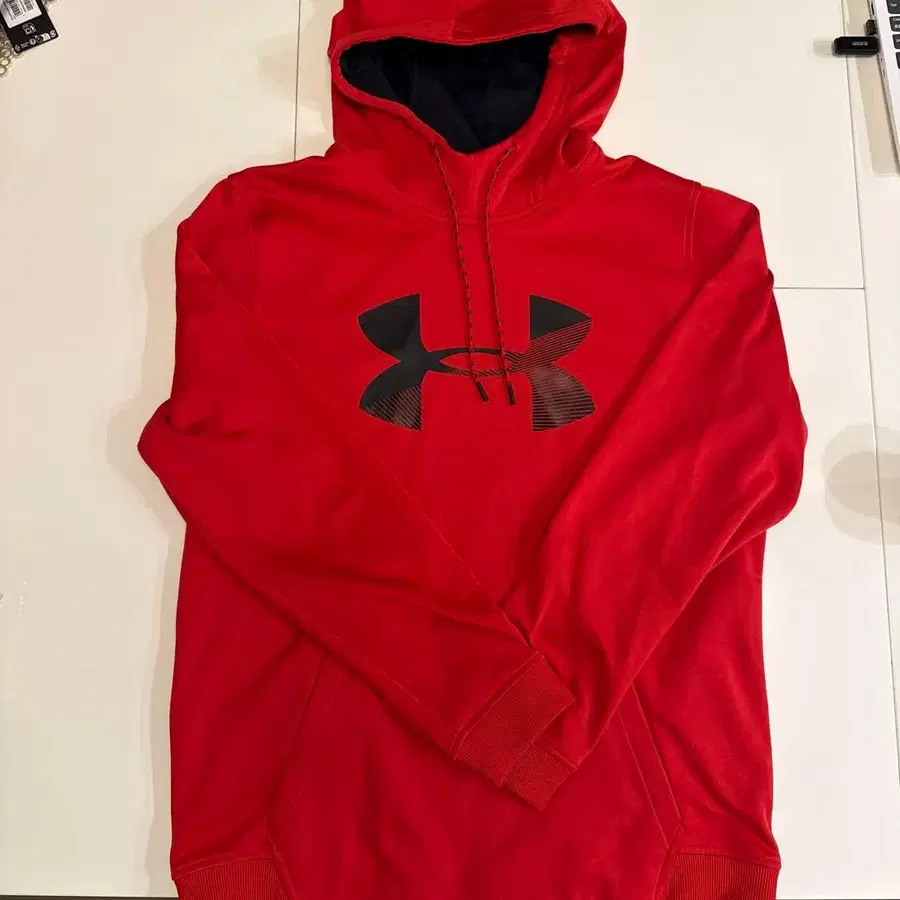 선명한 레드 색상의 후드티, 안쪽은 블랙으로 스타일리시합니다. - 브랜드: Under Armour - 색상: 레드 - 디자인: 후드 부착 - 로고: 큰 로고 프린트 - 소매: 리브 - 안쪽 색상: 블랙 방문해 주셔서 감사합니다. 사이즈 - XL(LL) 구매 후 3~4회 착용하고 자택 보관 중입니다.