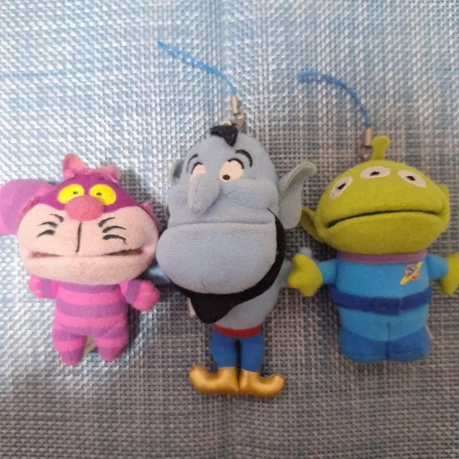 디즈니에서 판매되었던 のぱくぱく 키링 체셔 고양이, 지니, 리틀 그린맨 3종 세트입니다. 배를 누르면 입이 열리는 귀여운 상품입니다. 아주 오래된 상품으로 당시 몇 번 가지고 다녔기 때문에 입 주변에 얼룩이 있거나 - 입 안의 프린트에 금이 가 있습니다.
