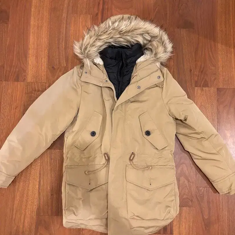 베이지 퍼 후드 탈부착 가능한 다운 자켓입니다. 안쪽은 블랙입니다. 여성용으로도 착용 가능합니다. - 색상: 베이지 - 안쪽 색상: 블랙 - 후드: 퍼 포함, 탈부착 가능 이너 블랙 부분은 탈부착이 불가능합니다. 평평하게 놓았을 때 기장 약 75cm 겨드랑이 아래 가슴 너비 약 54cm 소매 끝에 약간의 올풀림이 있습니다. 원가 약 20,000 방문해 주셔서 감사합니다.