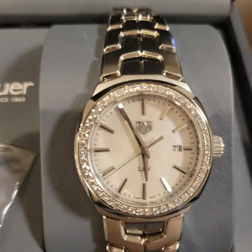 다이아몬드가 반짝이며 엄청난 고급스러움이 있습니다. 착용하고 있으면 자주 칭찬받았습니다. 시계도 작동하며, 시계 부품과 개런티 카드, 상자도 함께 드립니다. - 브랜드: 태그 호이어 - 색상: 실버 - 소재: 스테인리스 스틸 - 특징: 다이아몬드 장식 - 모델: 쿼츠 손목시계 - 사이즈: 여성용 방문해 주셔서 감사합니다.