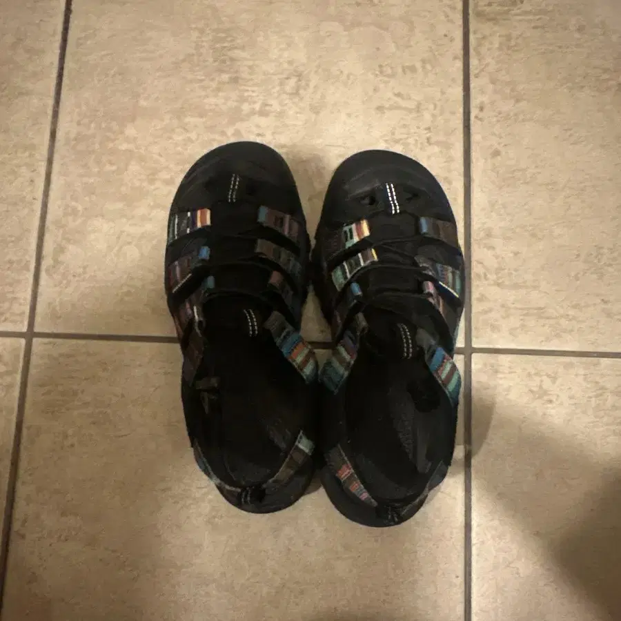 그립력이 뛰어난 러버 솔을 갖춘 KEEN의 스트랩 샌들. 2회 정도밖에 신지 않았습니다 ‼️ - 브랜드: KEEN - 색상: 블랙/멀티 컬러 - 밑창 특징: 그립력이 뛰어난 러버 솔 - 디자인: 스트랩 샌들 방문해 주셔서 감사합니다.