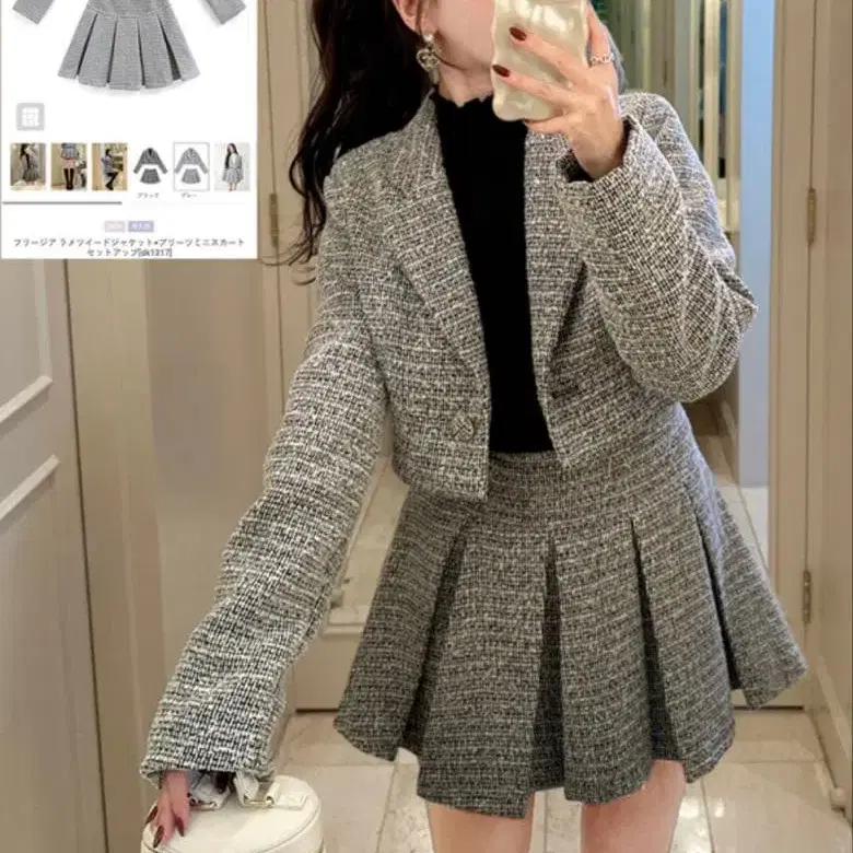 GRL 라메 트위드 자켓 x 플리츠 미니 스커트 셋업[dk1317]