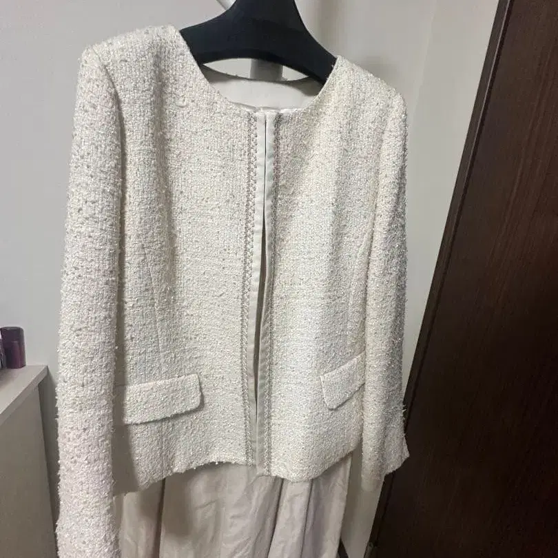 화이트 트위드 자켓과 베이지 플리츠 스커트 세트. UNTITLED - 색상: 화이트 - 디자인: 트위드 자켓 - 포켓: 앞면에 포켓 있음 - 스커트: 베이지 플리츠 스커트 - 소재: 광택 있는 소재 - 스타일: 캐주얼 포멀 가격 인하 협상 ⭕️ 방문해 주셔서 감사합니다. 컬러 - 화이트 계열 얼룩, 찢김, 냄새 등 - 없음