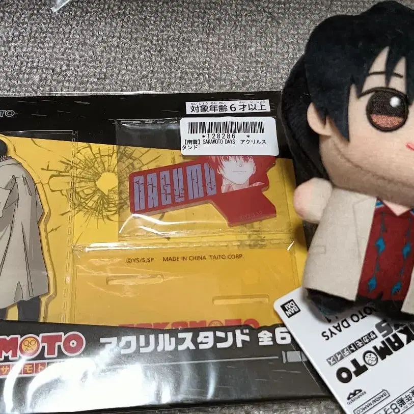 SAKAMOTO DAYS의 아크릴 스탠드, 봉제 인형과 키링 세트입니다. 즉시 구매 가능 - 캐릭터명: SAKAMOTO DAYS - 상품 타입: 아크릴 스탠드 - 상품 타입: 봉제 인형 - 상품 타입: 키링