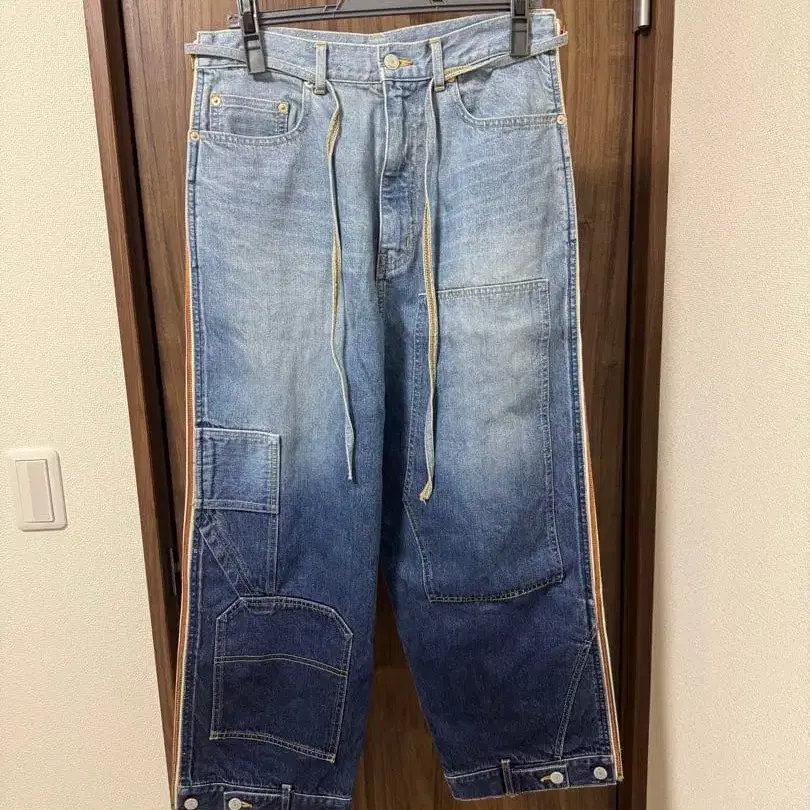 그라데이션 디자인의 패치워크 데님 와이드 팬츠. - 브랜드: beautiful people - 디자인: 패치워크 디자인 - 지퍼: 금속제 지퍼 - 색상: 그라데이션 데님 - 스타일: 와이드 팬츠 2way 데님 팬츠입니다. 기분에 따라 형태를 절개하여 사용할 수 있습니다. 방문해 주셔서 감사합니다. 사이즈 - XL(LL) 사이즈 - L