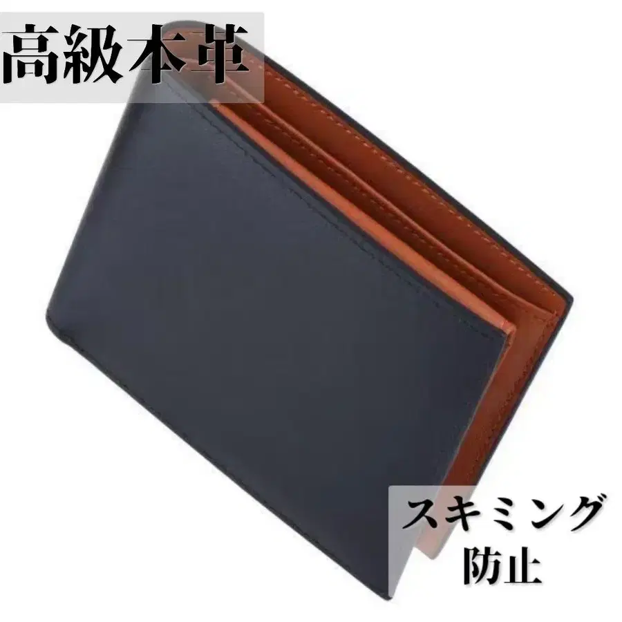• 2단 접이식 지갑 남성용 천연 가죽 블랙 안티스키밍 컴팩트
