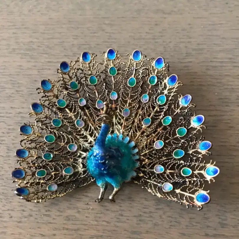 필리그리 은선 세공 800 각인 빈티지 브로치 칠보 에나멜
