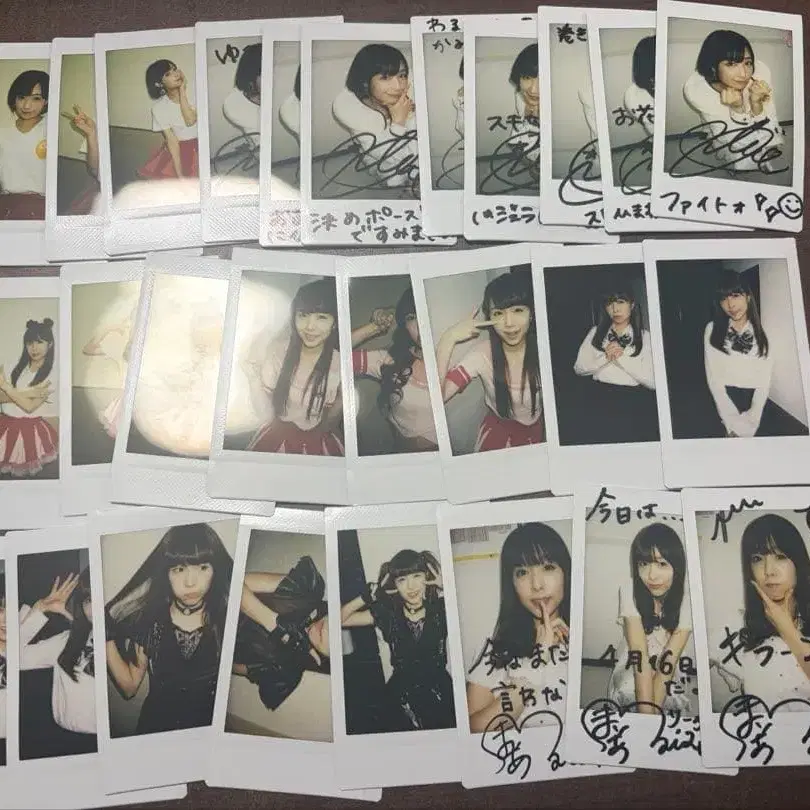 Chu-Z의 수년 전 초기 멤버 5명 시절의 솔로 폴라로이드입니다. 가챠가챠 특전이었던 것으로 기억합니다. KANA 11장 KAEDE 9장 LUNA 9장 MIKU 11장 MAIA 16장 총 56장입니다. 사인 포함된 것도 있지만 수신인이나 날짜는 없습니다. 슬리브는 없었고, 겹쳐서 함께 보관했습니다. 발송 시에도 함께 발송합니다.