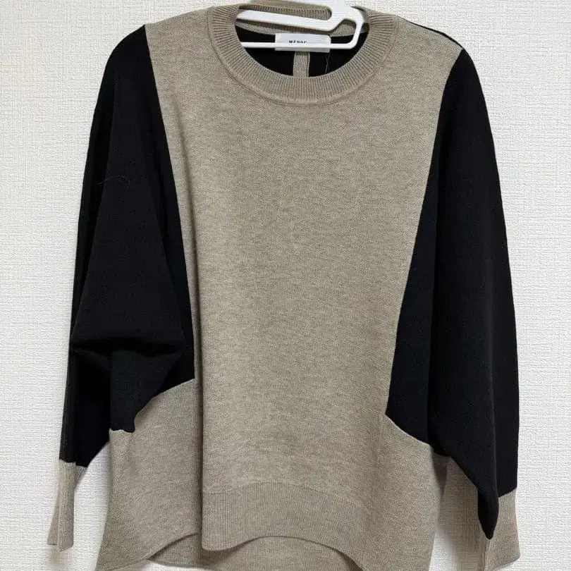 베이지와 블랙의 맨투맨 소재로, 드롭 숄더와 벌룬 슬리브 디자인이 특징인 긴팔 상의. - 색상: 베이지와 블랙의 콤비네이션 - 디자인: 라운드넥, 드롭 숄더 - 스타일: 백에 세로 라인 디자인 - 소재: 맨투맨 소재 - 소매 스타일: 벌룬 슬리브 방문해 주셔서 감사합니다. 사이즈 - FREE SIZE 사이즈 - M