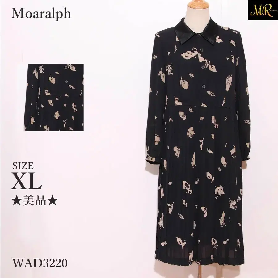 모아랄프 원피스 롱 기장 긴팔 꽃무늬 플리츠 스커트 카라 부착 앞 버튼