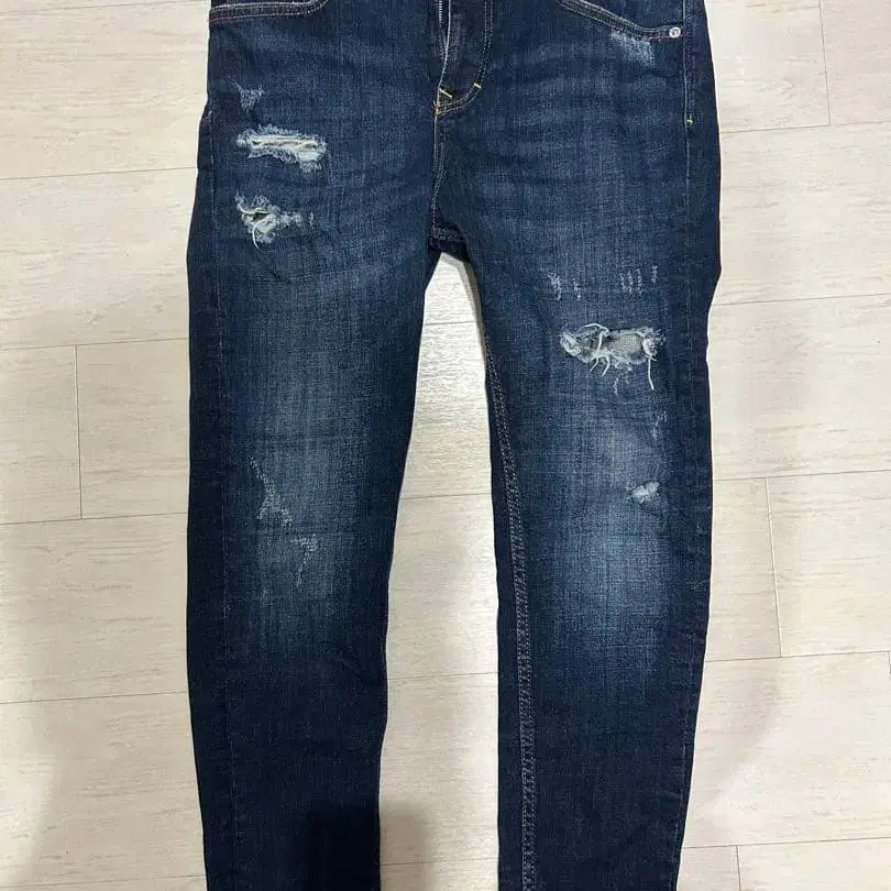 데미지 데님 팬츠 다크 블루 슬림핏 데미지 가공