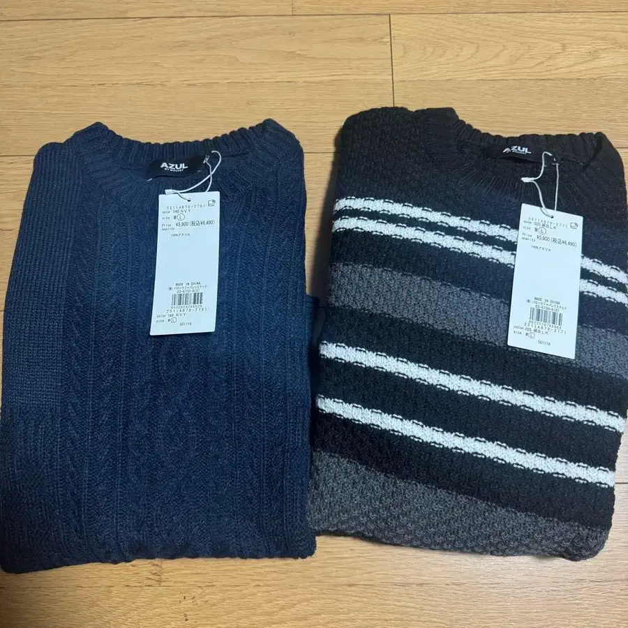 사이즈 - L 아즐 스웨터 2개 세트 1개 블랙 보더 2개 네이비 모두 사이즈 L 미사용 새상품