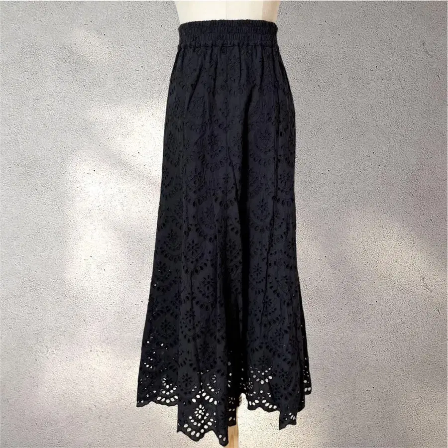 [비밍 바이 빔즈] M/스커트/레이스 패턴/블랙/허리밴딩/롱 기장