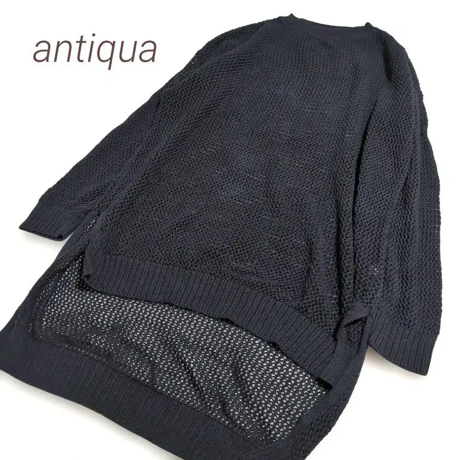 [ antiqua ] 안티카 비침 오버 니트 원피스 블랙