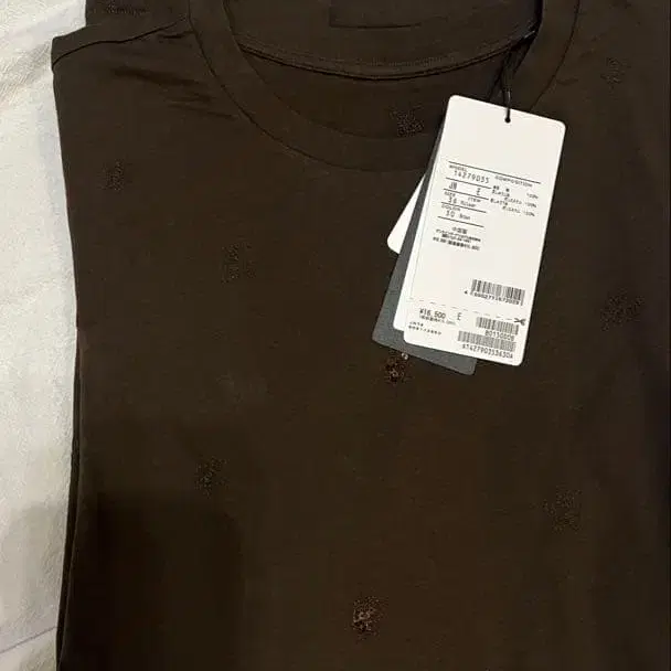 코튼 100% 브라운 T셔츠, 자수 디자인으로 스타일리시합니다.