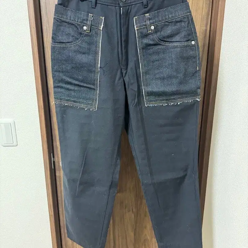 데님 포켓이 달린 블랙 카고 팬츠. - 브랜드: 08sircus - 색상: 블랙 - 디자인: 데님 포켓이 달린 워크 팬츠 - 스타일: 카고 팬츠 - 택: 08sircus 방문해 주셔서 감사합니다. 패치워크 데님 사이즈 - L