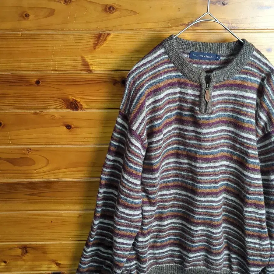 니트 스웨터 보더 하프 지퍼 레트로 빈티지 L 울 구제 의류