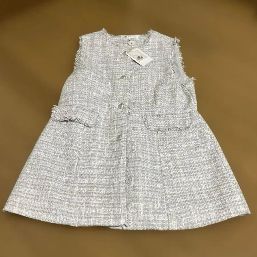 미사용 새상품 로페피크닉 리본 테이프 트위드 펄 베스트 라이트 그레이