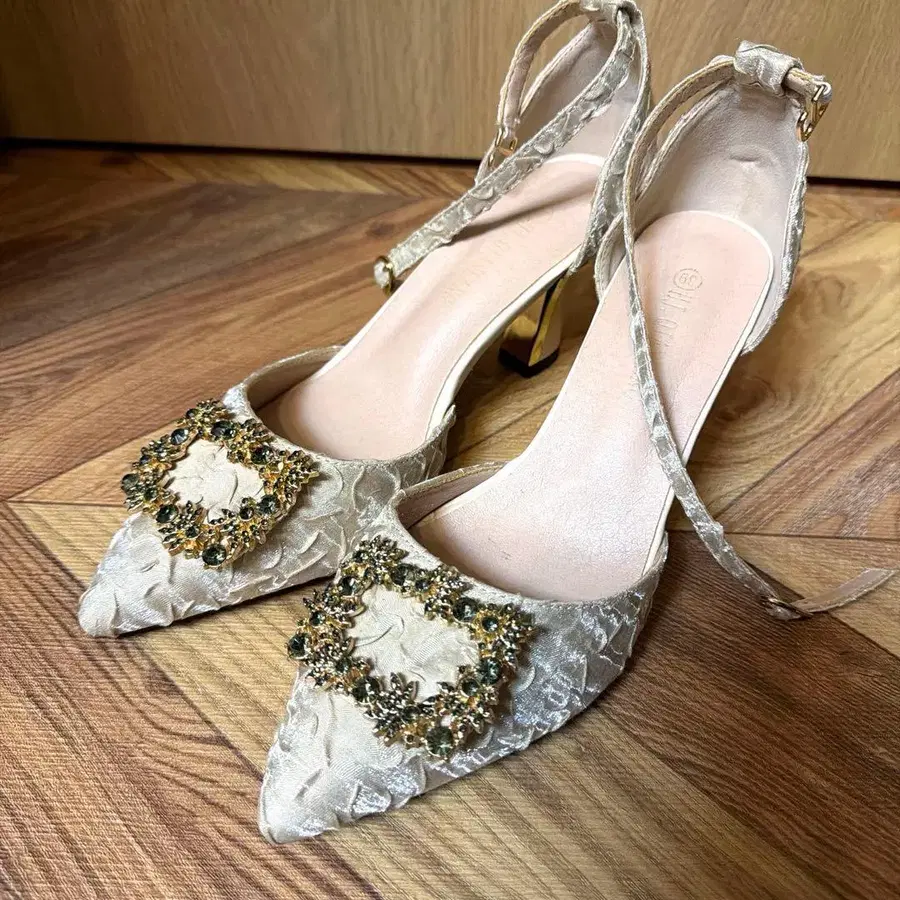 단 한 번만 사용하여 새상품급입니다 ♪ 색상 - 베이지 계열 힐 높이 - 7.5cm 발가락 - 스틸레토 밑창 힐 모양 - 와이드 힐 얼룩, 찢김, 냄새 등 - 없음