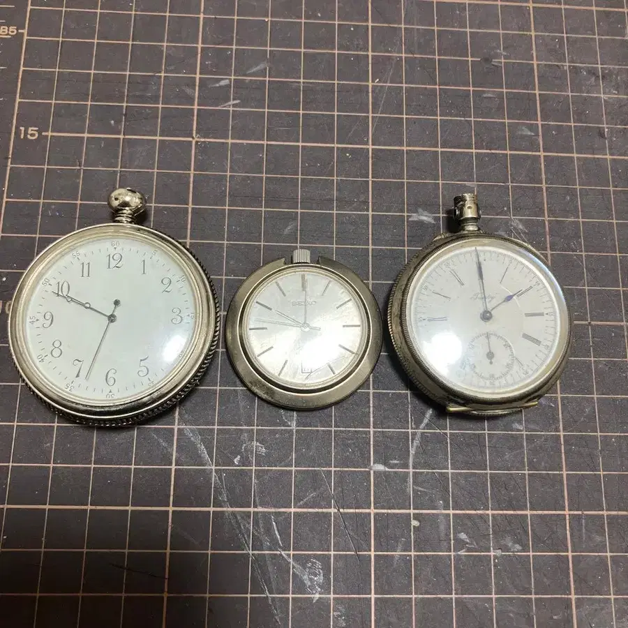 심플한 다이얼과 배 조각이 특징인 회중시계 3세트.