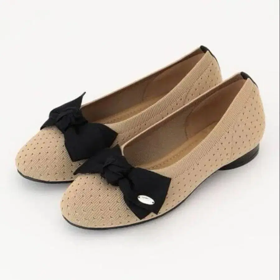 • [택 포함 새상품] 크루루바리에 펄 장식 플랫슈즈 베이지 리본