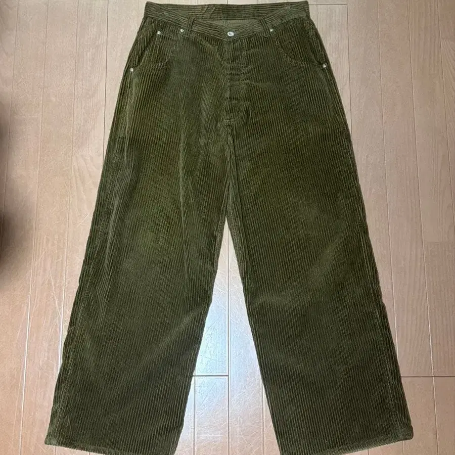 굵은 폭 코듀로이 올리브 컬러 와이드 스트레이트 허리/힙/밑위/인심 허리 - 88cm 힙 - 110cm 밑위 - 41cm 인심 - 72cm