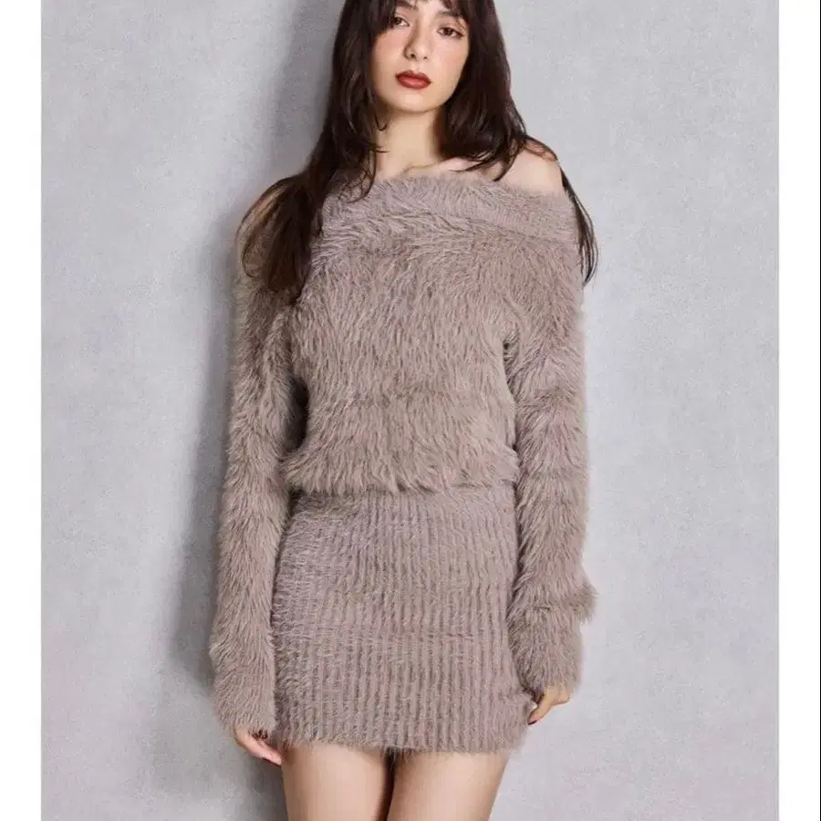 Chico 전후 2way 샤기 오프숄더 미니 원피스 니트 원피스