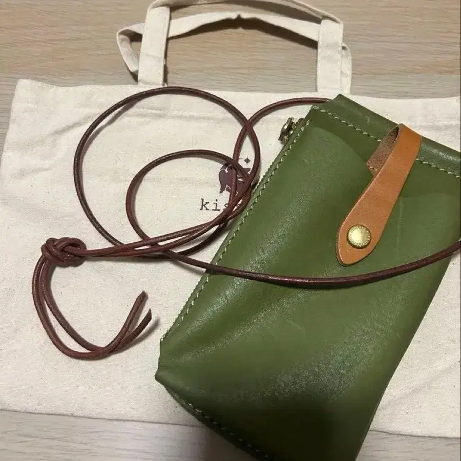 자동 번역되었어요. 원문보기천연 가죽 소재의 그린 숄더백, 지퍼와 스웨이드 안감.